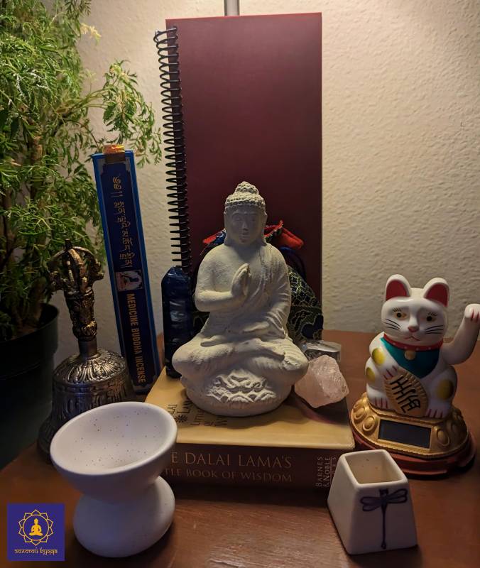 Свічки, ладан, сухоцвіти, статуї Будди, камені або кристали, дзвоники, тканина, чаші для води, амулети і фігурки - це основні елементи вівтаря, де легко налаштуватись на усвідомлені думки і прийняття свого бачення світу. Кожна з цих деталей символізує окрему ідею: